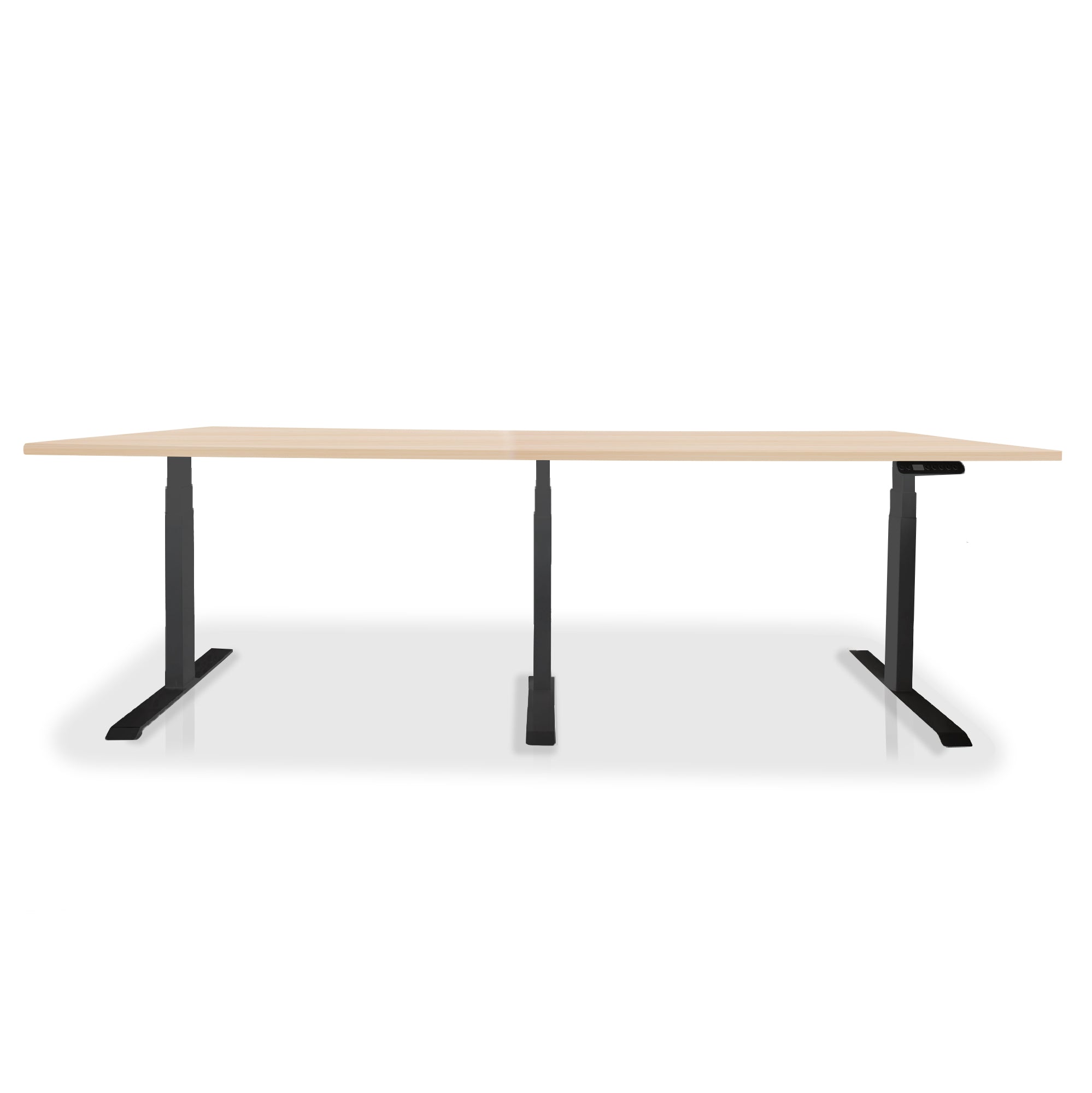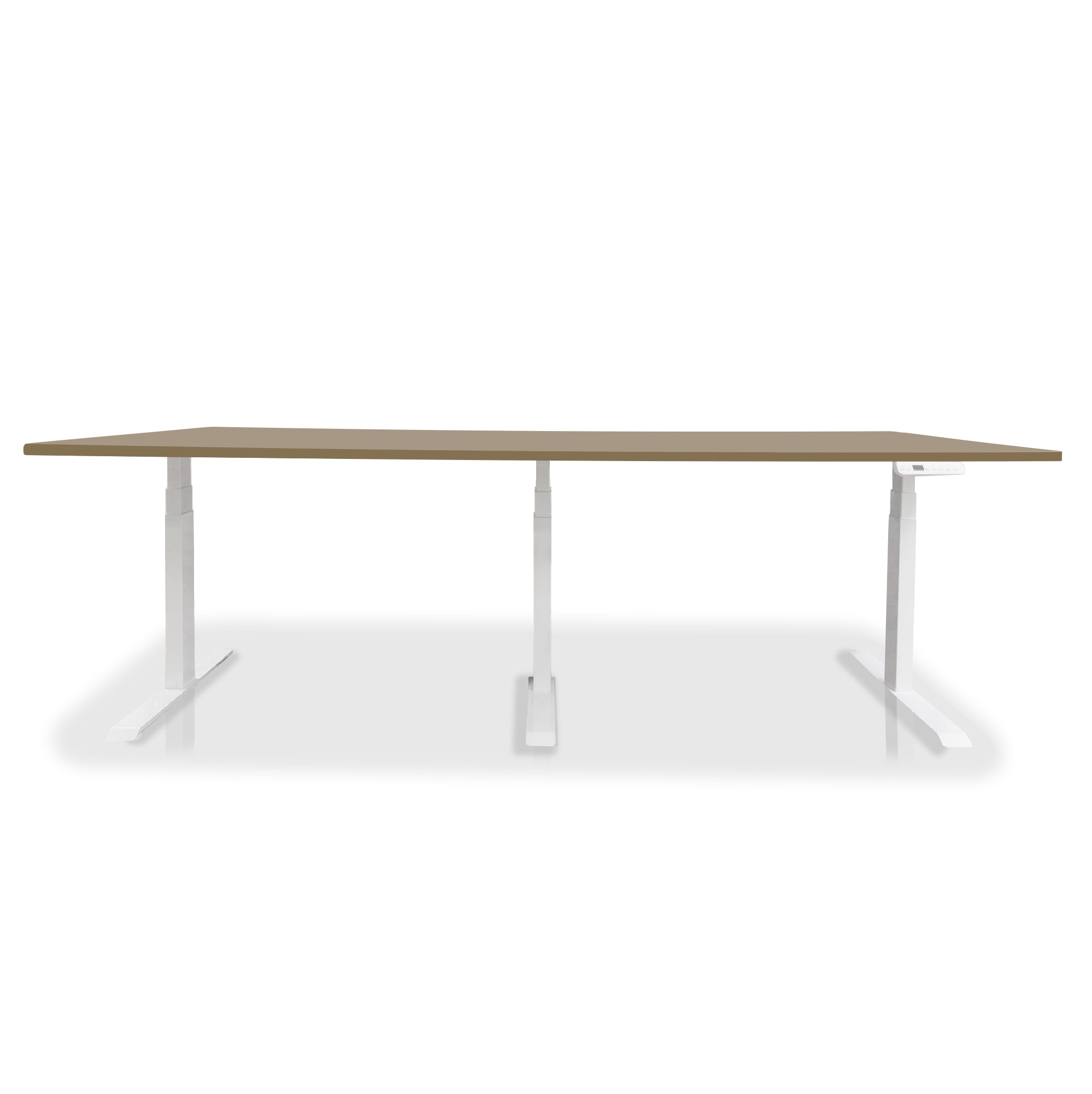 4. La stabilitéLa stabilité du bureau, y compris dans la position la plus haute, est essentielle pour vous assurer une utilisation confortable. Effectivement, si le bureau oscille de trop lorsqu’il est réglé en hauteur, il peut tout simplement devenir inutilisable, voire dangereux à cause du risque de chute d’équipements, comme l’écran de PC. Pour une bonne stabilité, optez pour un piètement large ainsi qu’un poids supporté d’au moins 70 kg hors plateau. 5. Les accessoiresIl existe une myriade d’accessoires permettant d’augmenter la polyvalence de votre bureau. Par exemple, des goulottes passe-câbles facilitent le cable management, tandis que des caissons mobiles offrent des espaces de rangement. Pensez aussi aux accessoires ergonomiques, comme le réhausseur d’écran (pour placer ce dernier à la bonne hauteur), au repose-poignet, au tapis anti fatigue (en conjonction avec le bureau assis-debout), etc. Le DYNAMIC, modèle de bureau KQUEO avec un plateau de 240 cmNous vous proposons le DYNAMIC en deux déclinaisons de plateau 240 cm : DYNAMIC 240x80cm et DYNAMIC 240x100 cm. Vous pouvez faire votre choix en fonction de la taille de la pièce, mais aussi de l’espace dont vous avez besoin pour installer vos équipements, comme deux écrans de PC. Réglable en hauteur de 66 à 130 cm, le bureau assis-debout DYNAMIC vous donne l’opportunité d’alterner entre les positions assis et debout. Vous gardez votre corps en dynamique, favorisez votre mobilité et évitez ainsi les effets néfastes consécutifs à une posture prolongée, comme les douleurs dans le dos, la nuque, etc. Pratique, la hauteur du bureau debout se règle au moyen d’un panneau de contrôle comportant 4 boutons. Choisissez parmi les hauteurs préprogrammées, réglez-la au centimètre près et gardez vos positions préférées en mémoire. Les bureaux assis-debout KQUEO : des modèles de qualitéChez KQUEO, nous concevons nous-même les modèles de bureaux. Cela signifie que nous réfléchissons aux problématiques que rencontrent les utilisateurs et, en collaboration avec un ergonome, nous définissons un cahier des charges précis. Nous maîtrisons toute la chaîne de production, de la construction à l’expédition. Nous avons aussi établi une charte qualité stricte que nous suivons à la lettre. Notamment, les moteurs des bureaux électriques sont testés individuellement en usine et capables d’endurer au moins 10 000 cycles de fonctionnement, ce qui correspond à environ 10 ans d’utilisation quotidienne. Nous offrons une garantie de 5 ans sur nos bureaux, y compris sur la motorisation. Concernant les plateaux, une garantie de 2 ans s’applique. Questions fréquentes sur le bureau de 240 cmDans cette Foire aux Questions, retrouvez nos réponses aux questions les plus régulièrement posées sur ce type de bureau. Combien coûte un bureau avec un plateau de 240 cm ?Un bureau avec un plateau de 240 cm coûte entre 650 et 800€. Du fait de la grande taille du plateau, les prix sont plus élevés que pour des dimensions standards (140 ou 160 cm). D’autres critères influent sur le prix, comme l’amplitude de hauteur, les matériaux du plateau et du cadre, la performance et la durabilité de la motorisation, etc. Quelle est la garantie d’un grand bureau ?La garantie d’un grand bureau est de 5 ans. C’est la garantie valable chez KQUEO, qui s’applique au cadre du bureau et à la motorisation. C’est 3 ans de plus que la durée de la garantie légale, signe de la confiance que nous portons à la durabilité de nos produits. Pour le plateau, la durée est de 2 ans. Comment se déroule la livraison ?La livraison se déroule généralement dans un délai de 4 à 12 jours ouvrés et est offerte. Vous pouvez choisir parmi plusieurs options de livraison, par exemple pour être livré plus rapidement, ou pour que le transporteur dépose les colis à l’étage. Pour un modèle électrique, vous recevez deux colis : l’un avec le cadre et les moteurs, l’autre avec le plateau. |