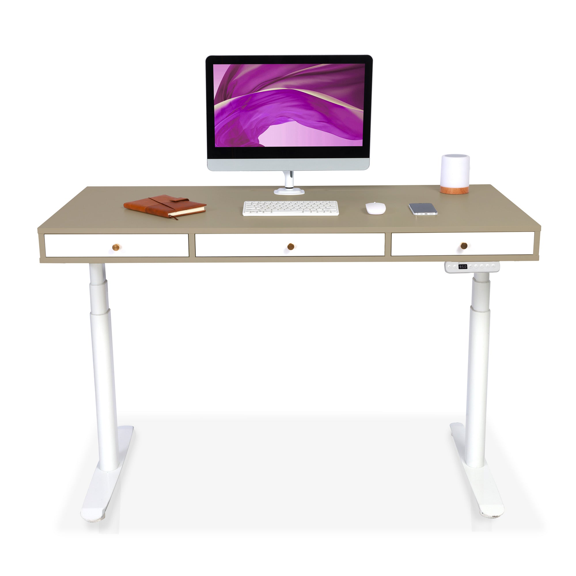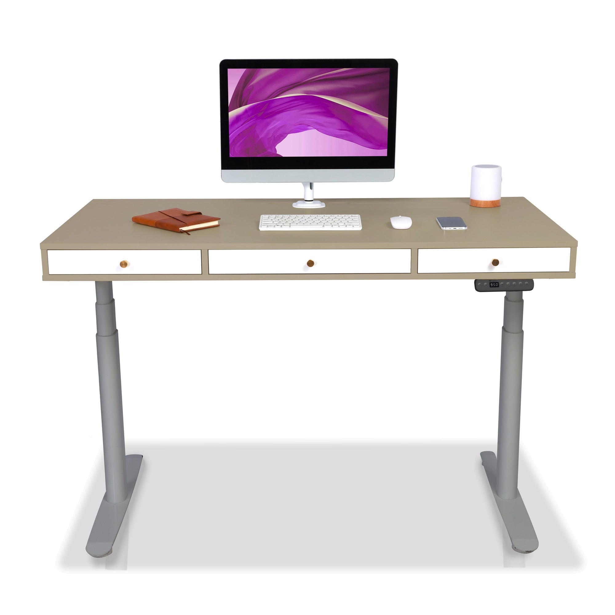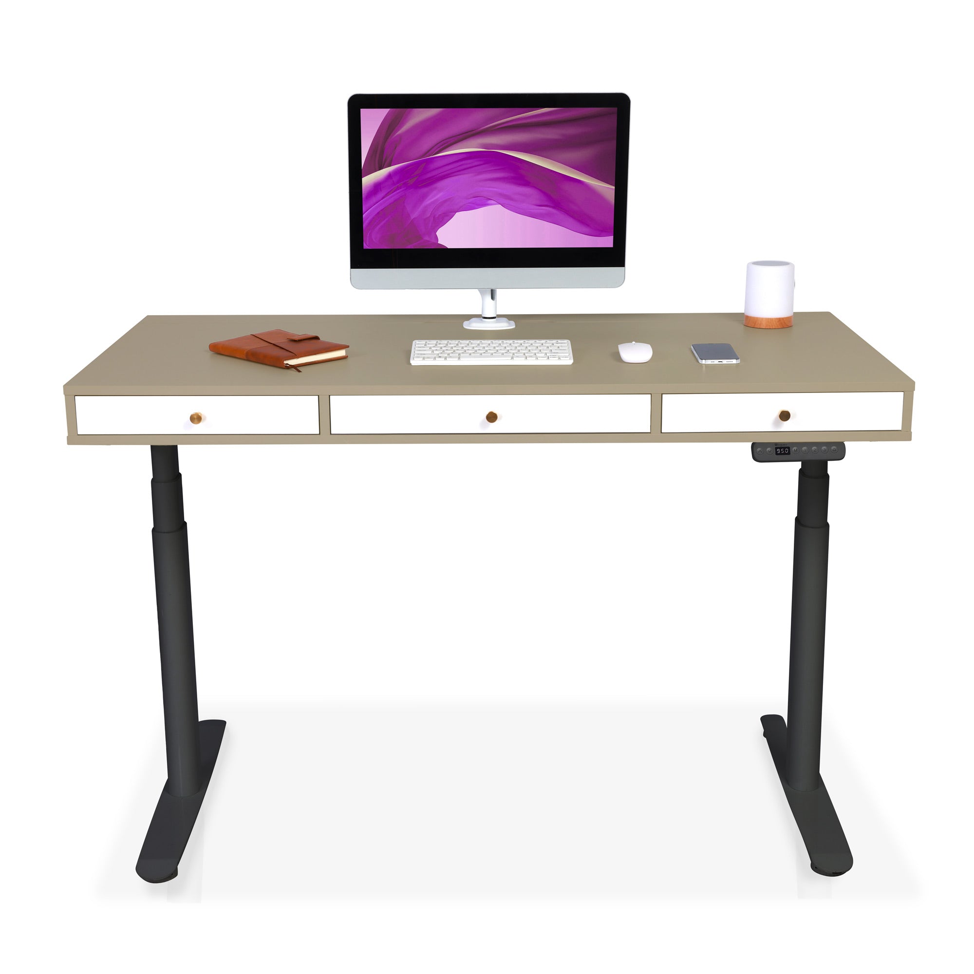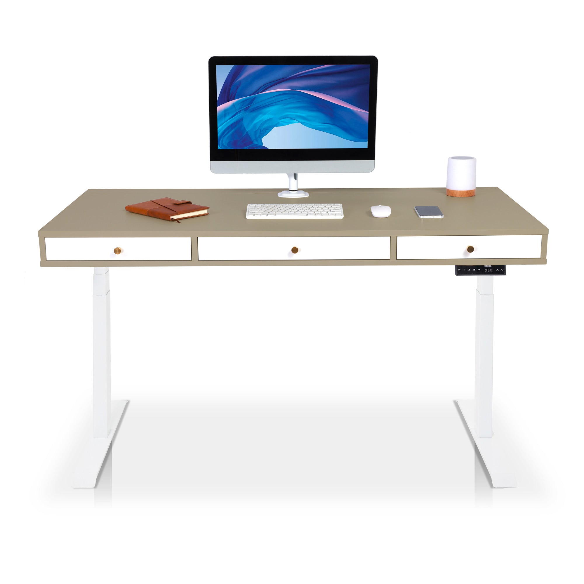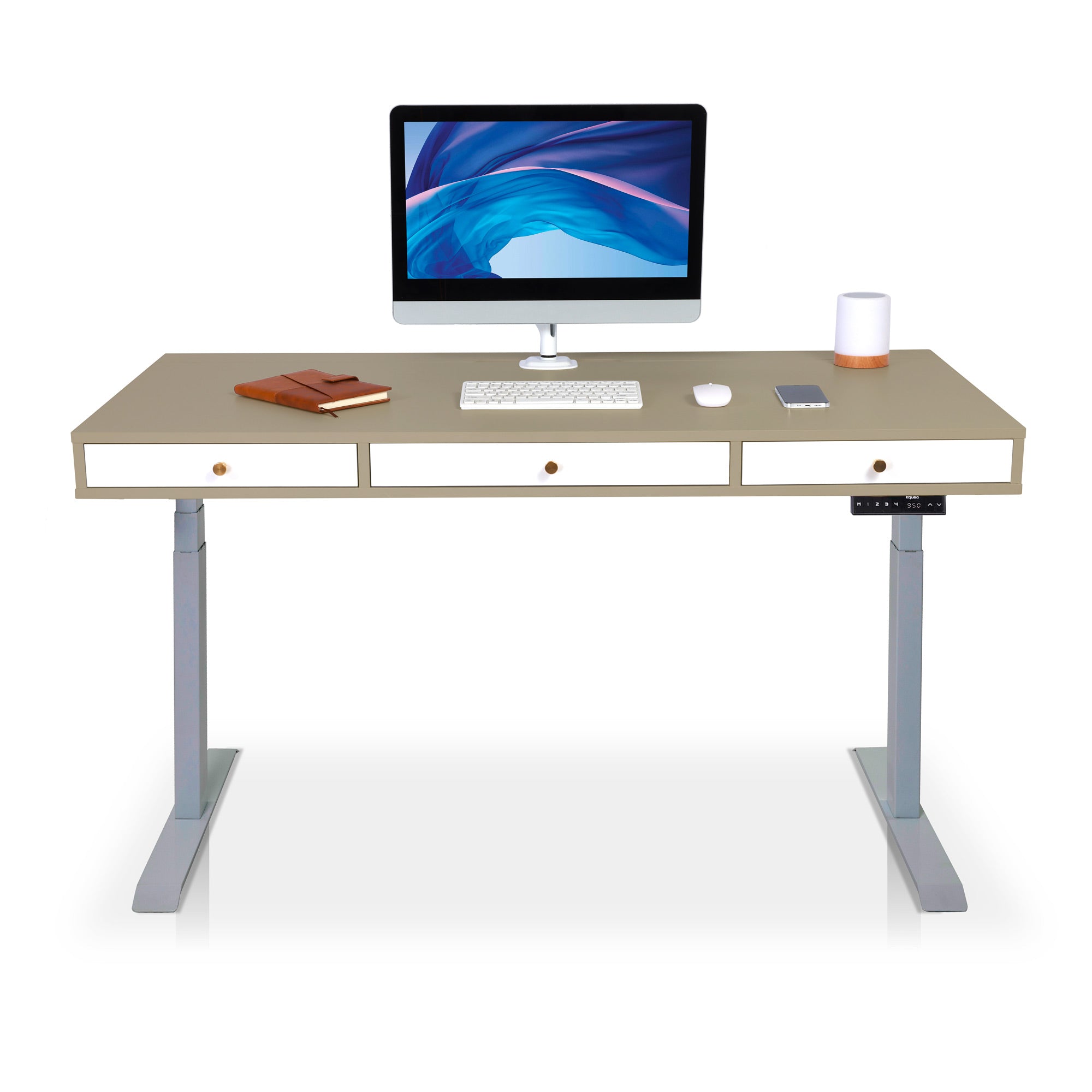 Les moteurs des bureaux électriques KQUEO sont performants. La motorisation est rapide (38 mm/s) et discrète (< 50 dB). Restez concentré sur votre travail et alternez les positions assis et debout au bureau en quelques secondes. 4. Les aspects pratiquesSi vous avez beaucoup de choses à ranger, comme un PC portable, une tablette ou des documents, un bureau assis debout avec rangements est conseillé. Il peut s’agir de tiroirs et / ou d’espaces ouverts. Si votre configuration de PC requiert une gestion des câbles assez exigeante, vérifiez que le bureau debout électrique dispose bien de trous passe-câbles. Vous pouvez aussi ajouter des goulottes range-câbles. 5. Le designIl y a deux aspects du design à examiner : la conception (le type et les dimensions du bureau) et l’esthétique (les coloris, le style, etc.). En détail :