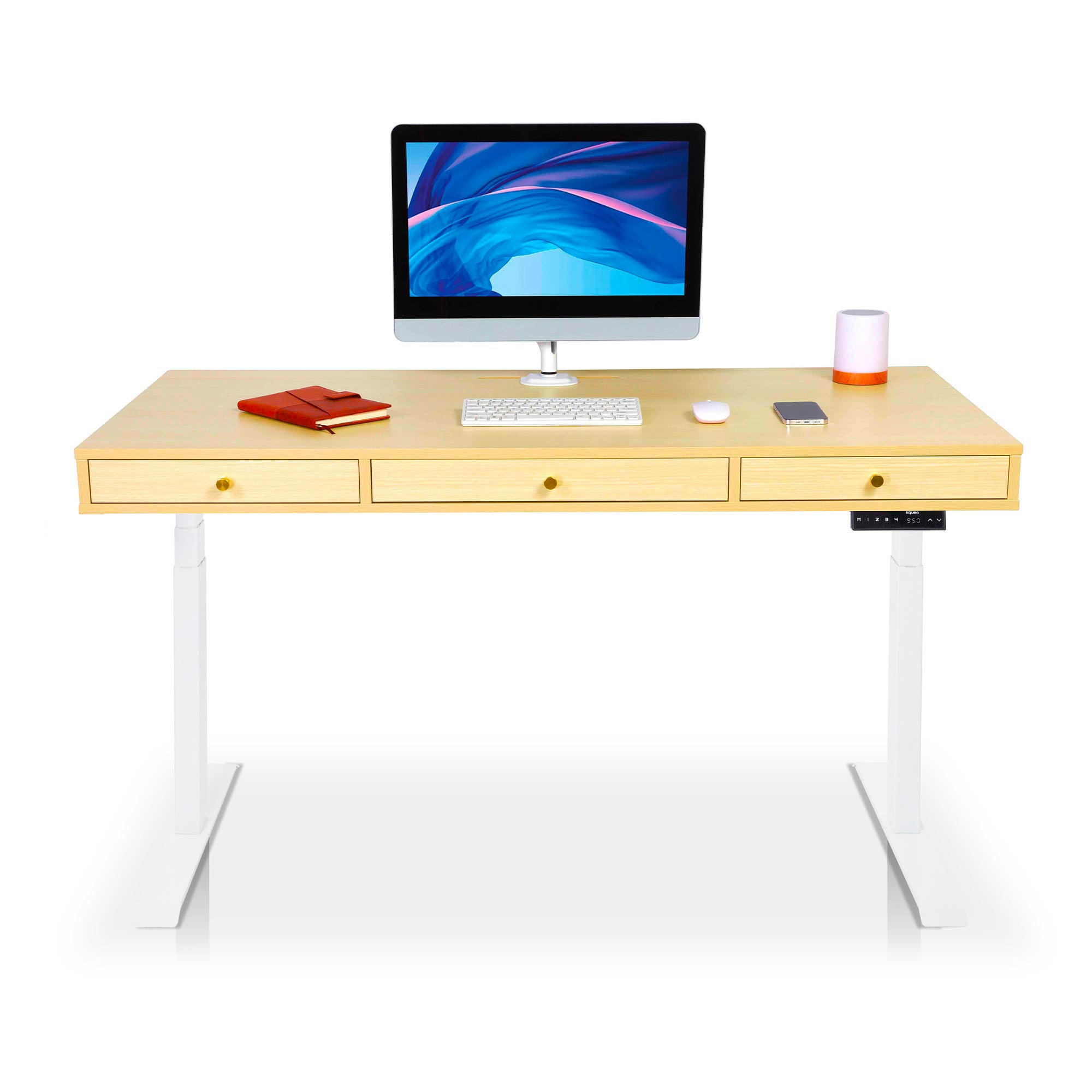 Les moteurs des bureaux électriques KQUEO sont performants. La motorisation est rapide (38 mm/s) et discrète (< 50 dB). Restez concentré sur votre travail et alternez les positions assis et debout au bureau en quelques secondes. 4. Les aspects pratiquesSi vous avez beaucoup de choses à ranger, comme un PC portable, une tablette ou des documents, un bureau assis debout avec rangements est conseillé. Il peut s’agir de tiroirs et / ou d’espaces ouverts. Si votre configuration de PC requiert une gestion des câbles assez exigeante, vérifiez que le bureau debout électrique dispose bien de trous passe-câbles. Vous pouvez aussi ajouter des goulottes range-câbles. 5. Le designIl y a deux aspects du design à examiner : la conception (le type et les dimensions du bureau) et l’esthétique (les coloris, le style, etc.). En détail :