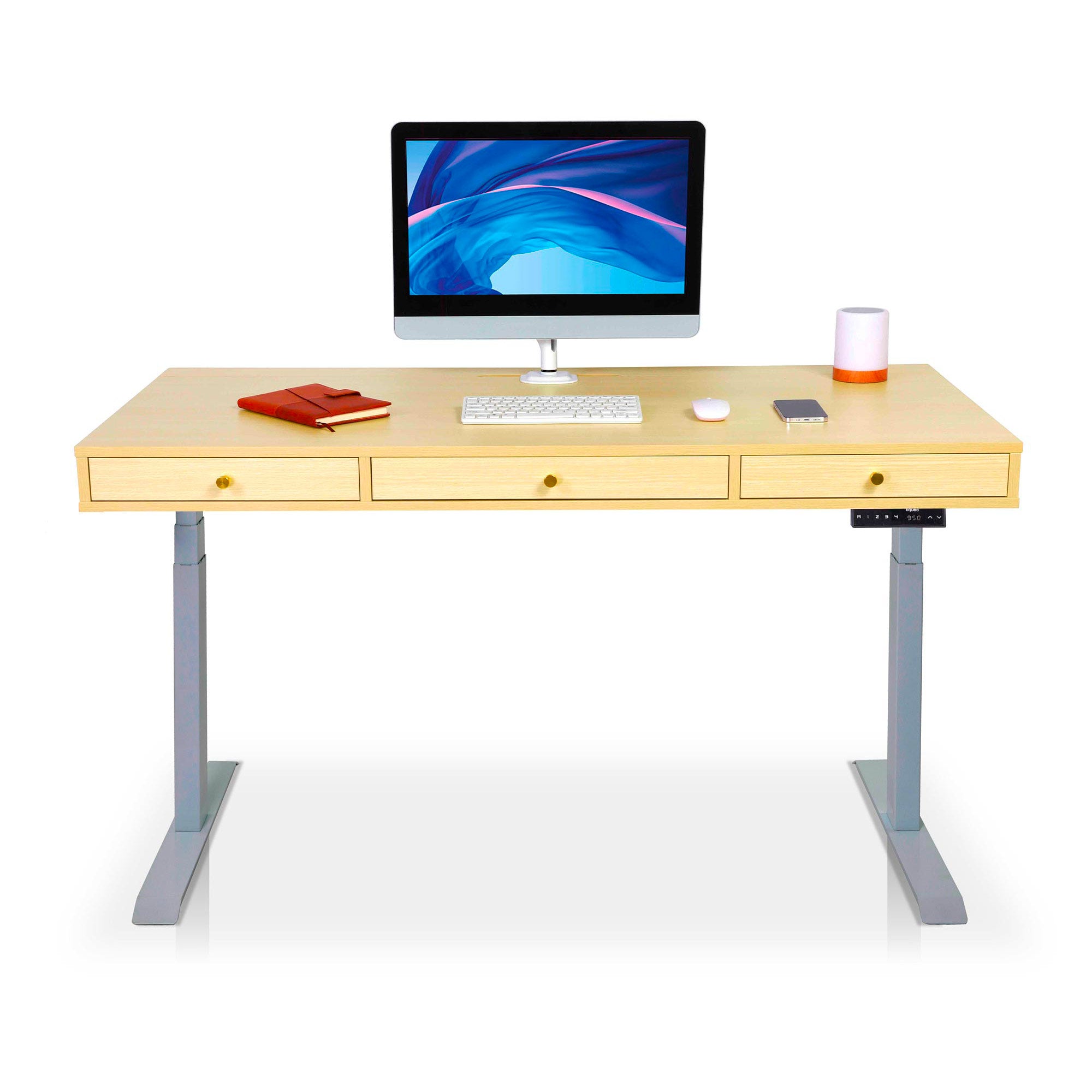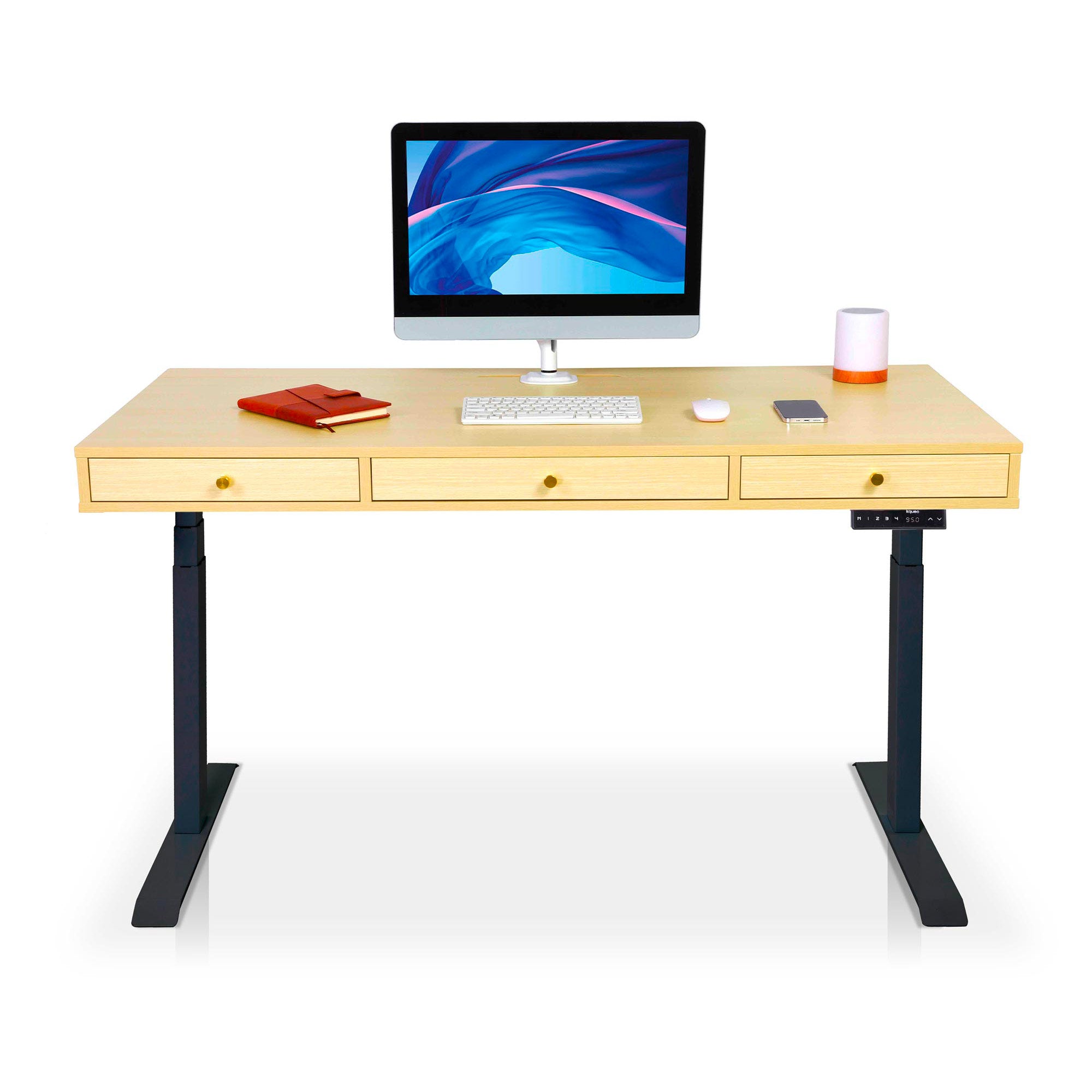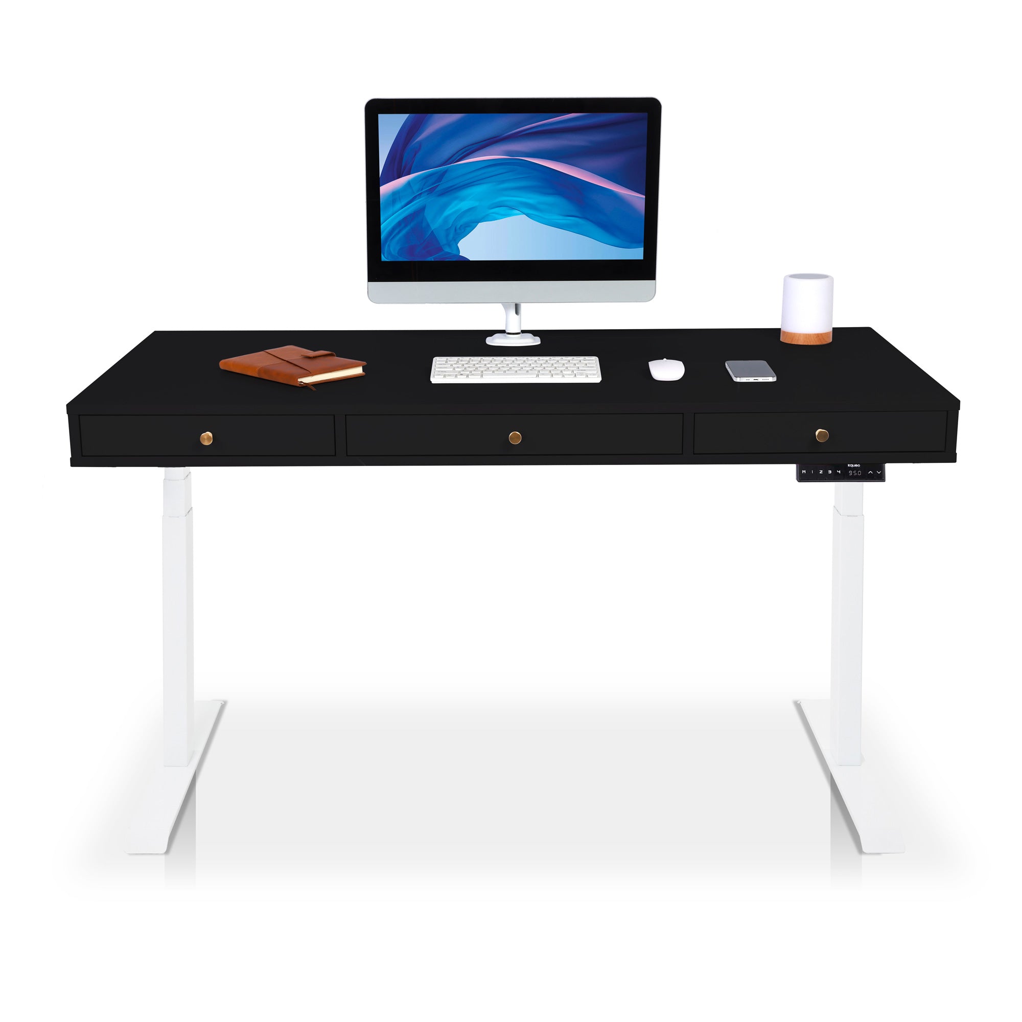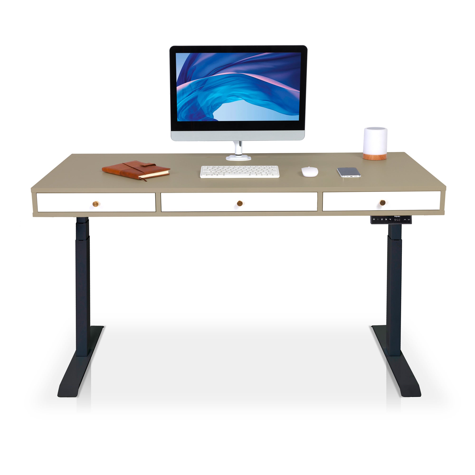 Les moteurs des bureaux électriques KQUEO sont performants. La motorisation est rapide (38 mm/s) et discrète (< 50 dB). Restez concentré sur votre travail et alternez les positions assis et debout au bureau en quelques secondes. 4. Les aspects pratiquesSi vous avez beaucoup de choses à ranger, comme un PC portable, une tablette ou des documents, un bureau assis debout avec rangements est conseillé. Il peut s’agir de tiroirs et / ou d’espaces ouverts. Si votre configuration de PC requiert une gestion des câbles assez exigeante, vérifiez que le bureau debout électrique dispose bien de trous passe-câbles. Vous pouvez aussi ajouter des goulottes range-câbles. 5. Le designIl y a deux aspects du design à examiner : la conception (le type et les dimensions du bureau) et l’esthétique (les coloris, le style, etc.). En détail :