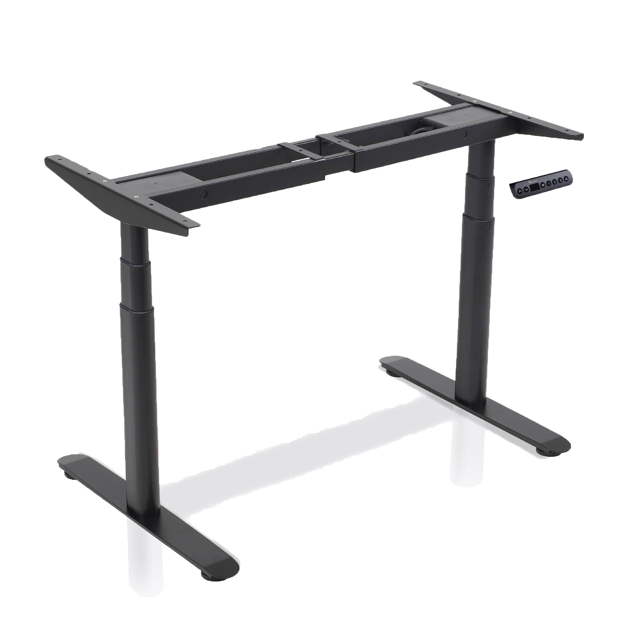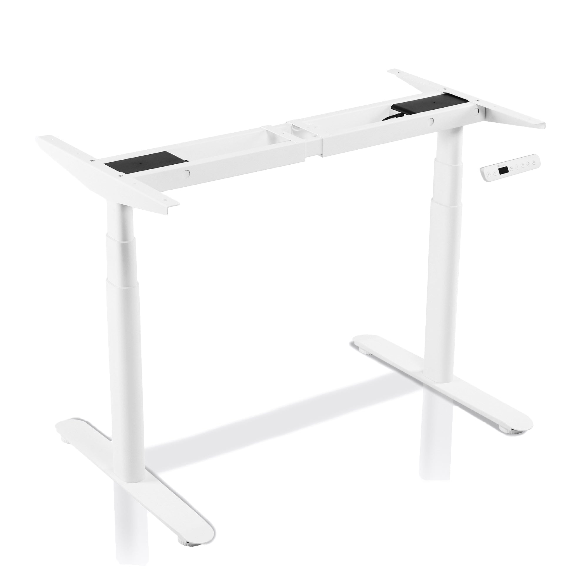 Les piètements de bureau ont parfois l’avantage d’être extensibles, ce qui signifie qu’ils peuvent s’adapter à des plateaux de différentes dimensions. Concernant le poids, outre le poids du plateau, il faut prendre en compte le poids des éléments sur le plateau, comme la tour d’ordinateur, le moniteur, les éventuels rangements, etc. Optez pour un cadre de bureau suffisamment solide, à même de supporter au moins 70 kg hors plateau. Les piètements DYNAMIC soutiennent jusqu'à 170 kg (hors plateau), signe de leur excellente robustesse et stabilité. 2. L’amplitude de hauteurLe bureau peut être réglé en hauteur d’un minimum à un maximum : c’est cet intervalle que vous devez examiner. Celui-ci doit être adapté à votre taille afin de pouvoir travailler confortablement au bureau, aussi bien assis que debout. Si, par exemple, l’amplitude est insuffisante par rapport à votre taille, vous ne vous tiendrez pas correctement en position debout. Notre conseil : optez pour des modèles avec une large amplitude de hauteur. C’est le cas du piètement de bureau assis debout DYNAMIC, réglable en hauteur de 63 à 128 cm, ce qui convient à une grande majorité d’utilisateurs. 3. Le contrôle de la hauteurLes piètements de bureau réglable en hauteur sont équipés d’un ou plusieurs moteurs afin de régler la hauteur du plateau. La motorisation se contrôle depuis un panneau de contrôle. Celui-ci vous donne plusieurs possibilités :
