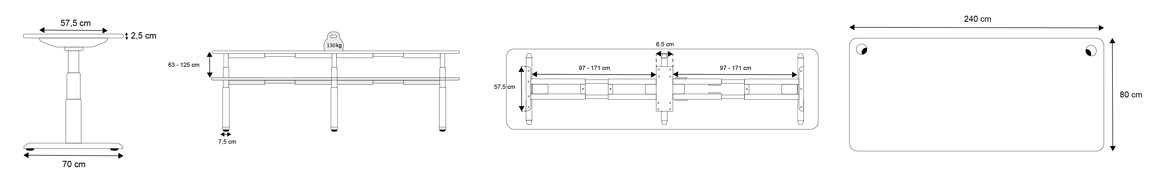 Table de réunion réglable en hauteur électrique 240x80 cm - TRIO